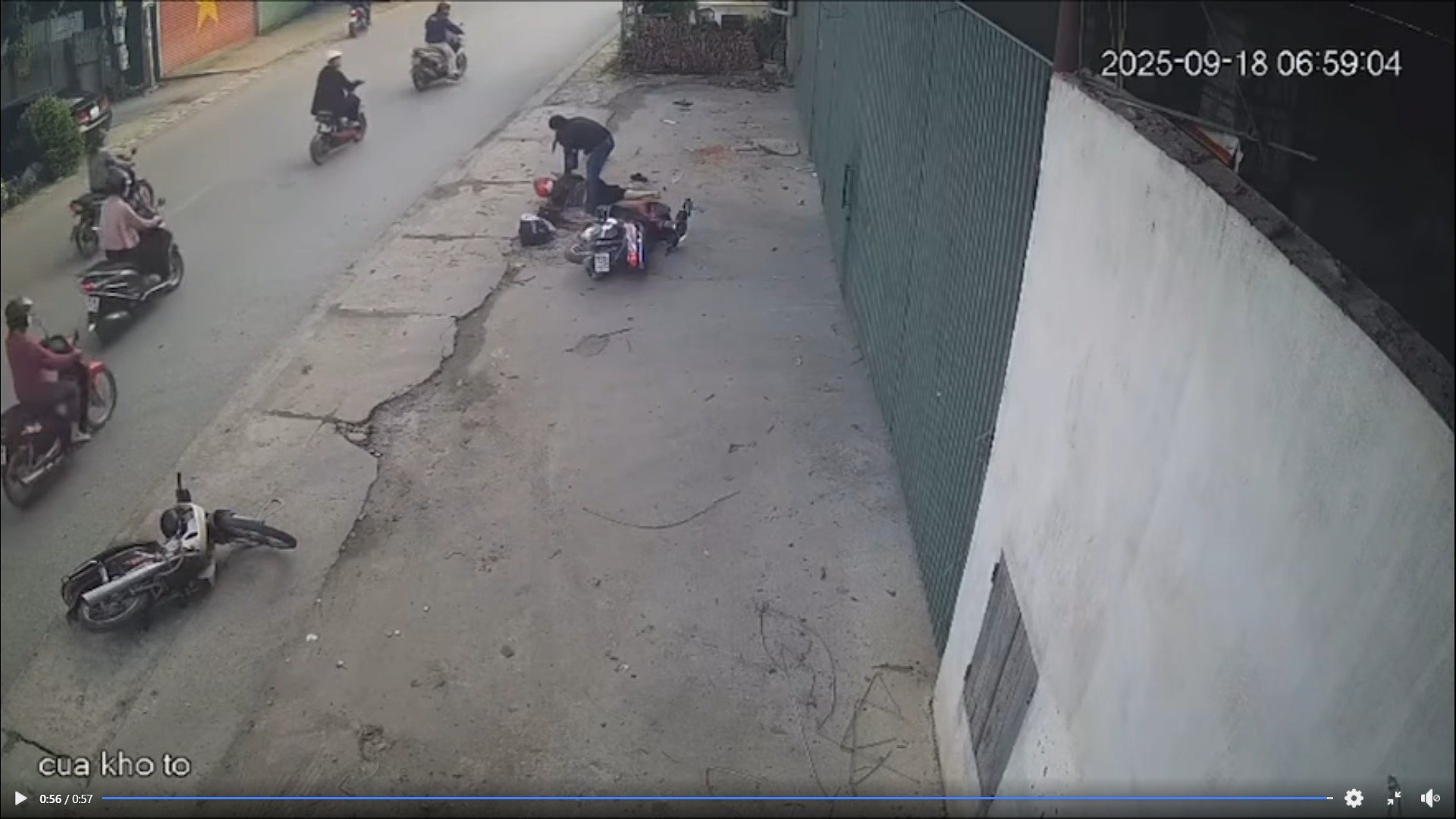 Theo camera an ninh tại hiện trường ghi lại, khi chiếc xe máy của 2 người phía trước dừng lại, nam thanh niên liền cầm hung khí lao đến, đâm vào người đàn ông cầm lái. Quá hoảng sợ, người đàn ông này đã bỏ chạy.